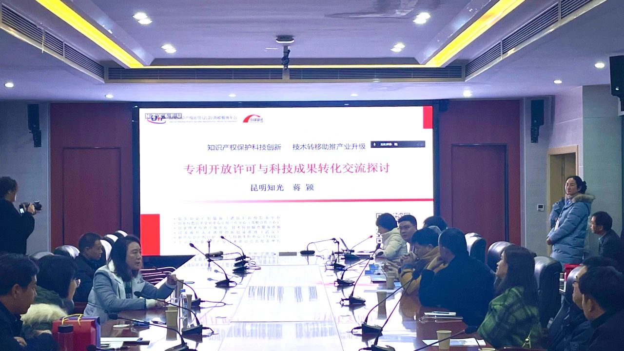 2023年12月23日下午,我校技术转移中心为云南省太阳能协会2023年度工作会议作关于专利开放许可与科技成果转化交流探讨的主题报告,并邀请昆明知光科技服务有限公司与协会企业进行交流对接。