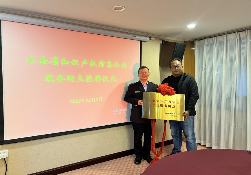 会议最后,举行了“云南省知识产权信息公共服务网点”授牌仪式,由陈社明处长向我校技术转移中心授牌。