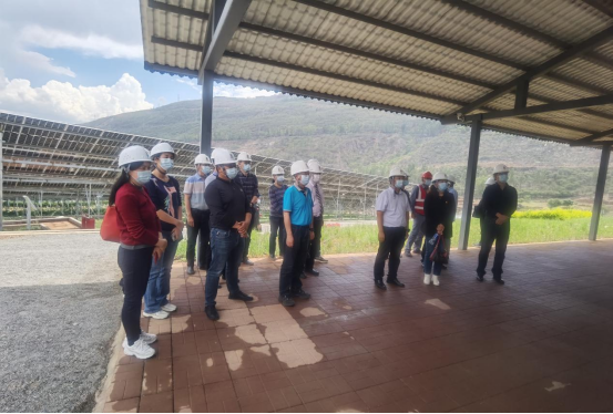 在东川区人民政府副区长李顺朝等人陪同下,调研组一行首先参观了东川区“光伏发电+集水灌溉+生态修复”示范项目,听取了项目负责人的工作汇报,该项目由光伏板集雨、水窖储水、旱季滴灌、分区绿植(养殖)、绿色发电五大系统工程组成,通过5G技术形成各版块之间的互联互通。