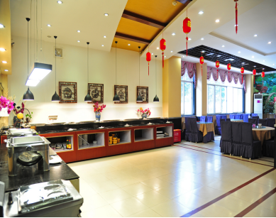 3、餐厅推出川、滇菜肴,提供零点、会议餐和各种标准宴席,可满足250人同时就餐。